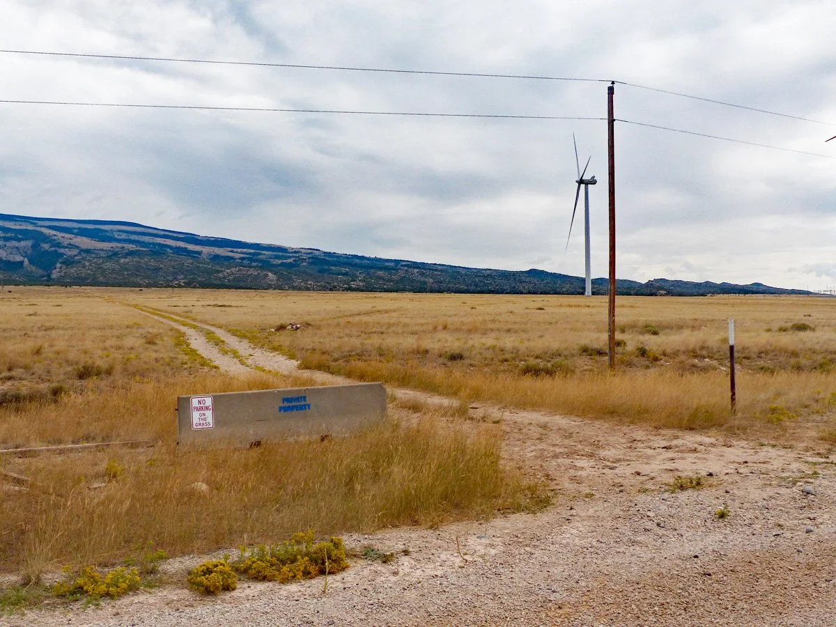 Drive 1.0 mile south on S Railbed Rd. to an obscure and unsigned two-track road to the left (east) just before (north of) a prominent ranch road to the right. (See photo) Note: Just before this two-track there is an interesting piece of antique farm machinery in the field on the right, (Update: as of 8/29/2025 this antique was gone.)